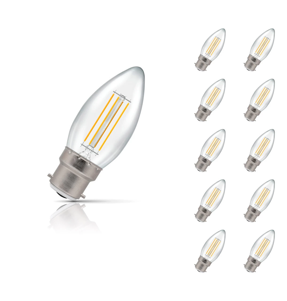 Crompton Candle LED Light Bulb Dimmable B22 5W (40W Eqv) Warm White 10-Pack Clear