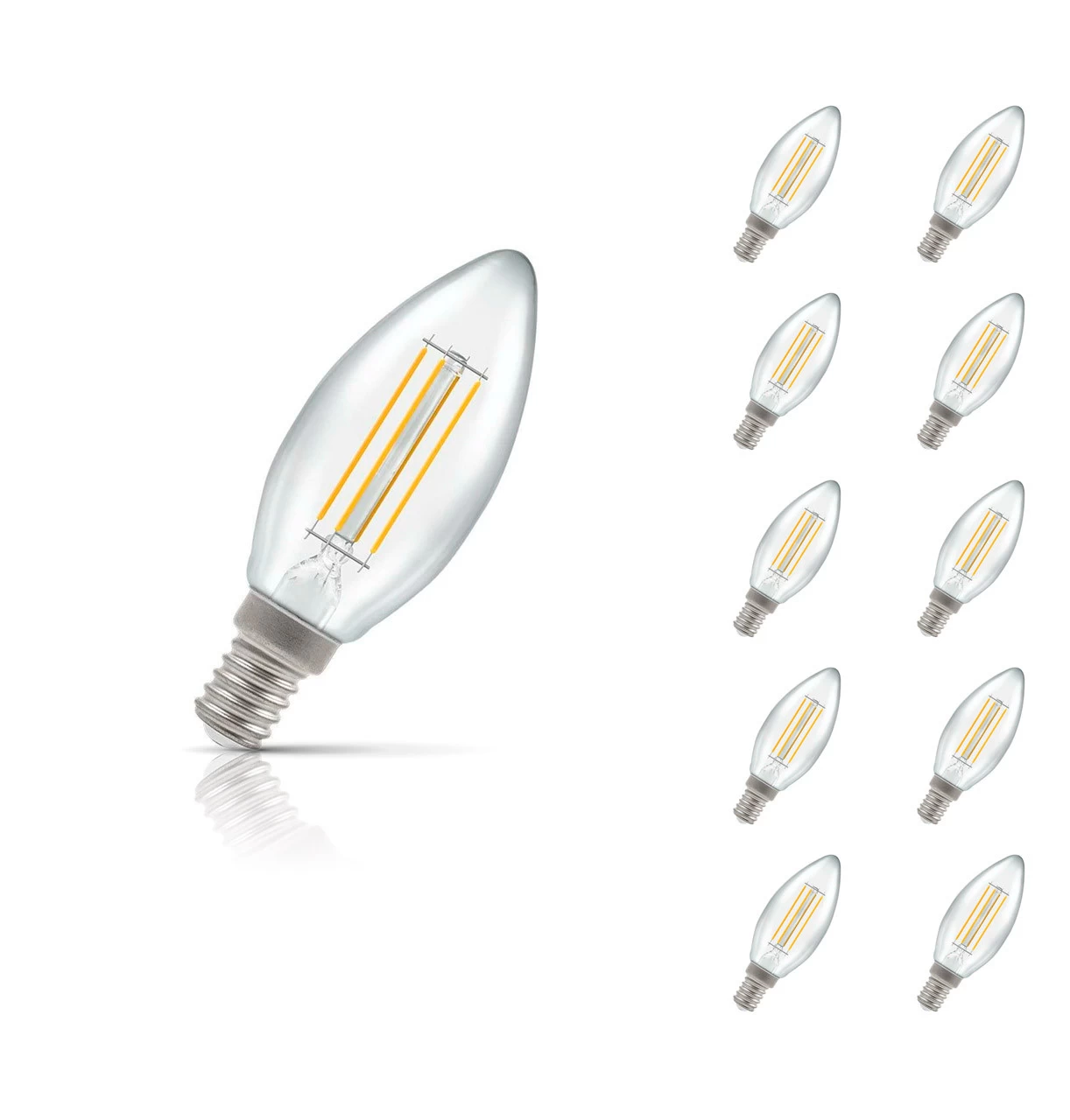 Crompton Candle LED Light Bulb Dimmable E14 5W (40W Eqv) Warm White 10-Pack Clear