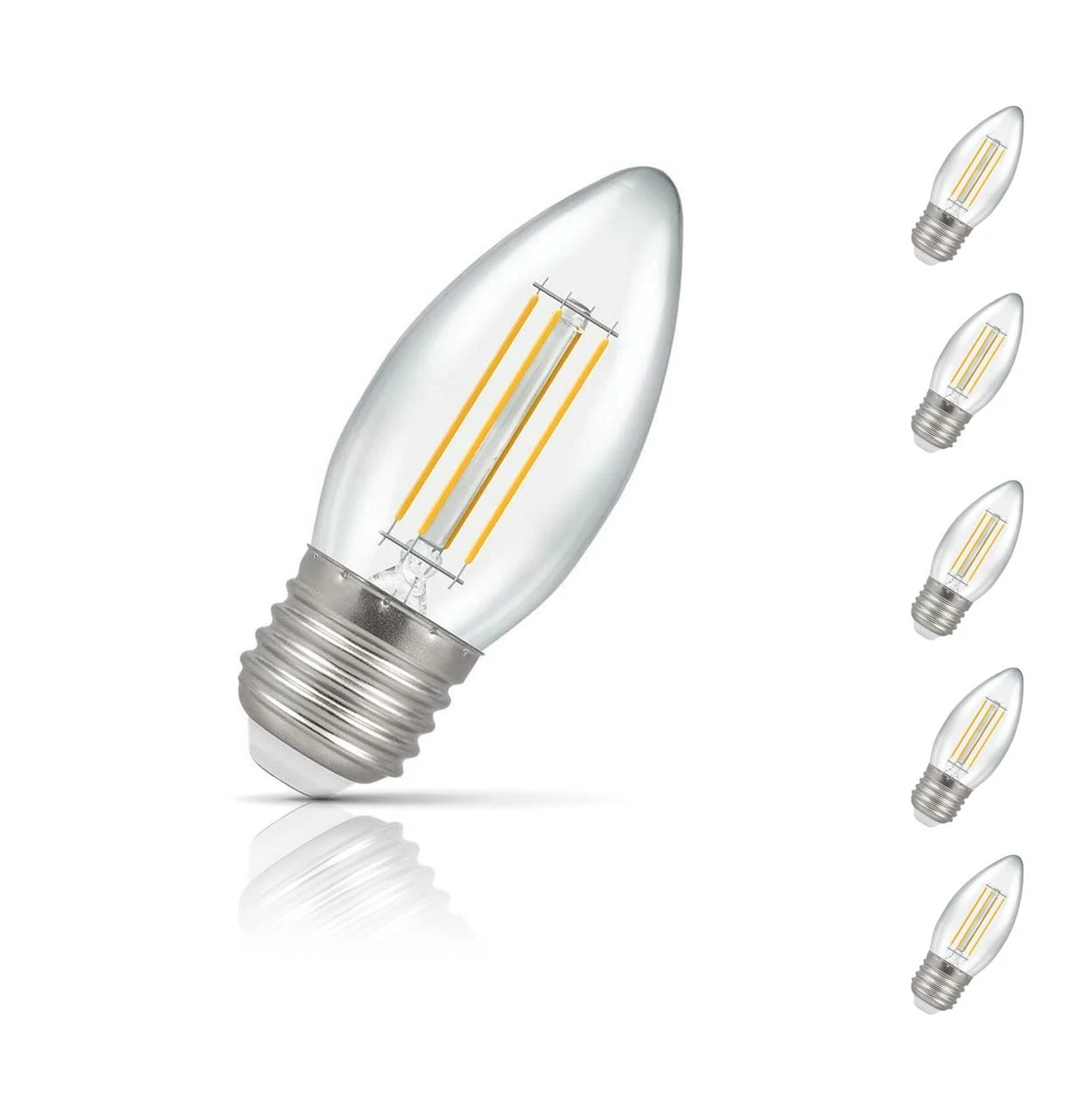 Crompton Candle LED Light Bulb Dimmable E27 5W (40W Eqv) Warm White 5-Pack Clear