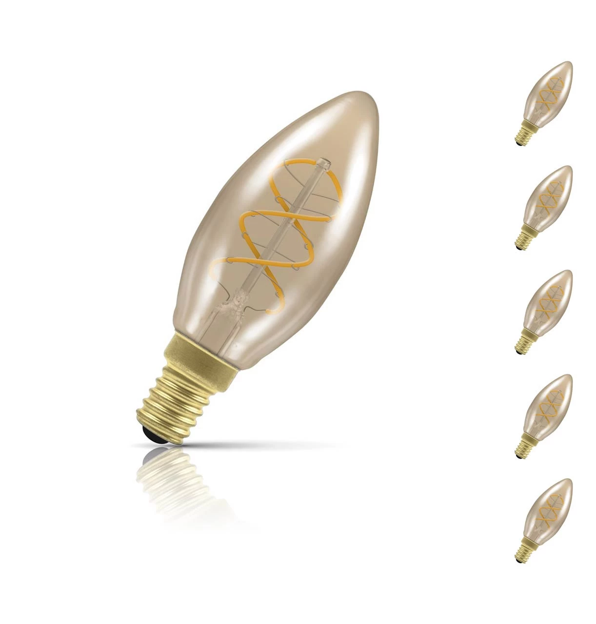 A value pack of 5 energy efficient antique style LED candle light bulbs from Crompton Lamps are the perfect replacement for outdated and inefficient 15W incandescent light bulbs, which are now in short supply.
