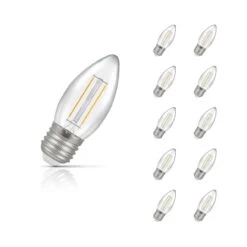 This bulk-buy value pack of 10x Crompton Lamps 2.5W dimmable LED candle light bulbs with ES-E27 Edison screw (27mm) fittings are direct replacements for traditional 25W light bulbs, but have the potential to reduce your home lighting bills and reduce the frequency of needing to replace your light bulbs.