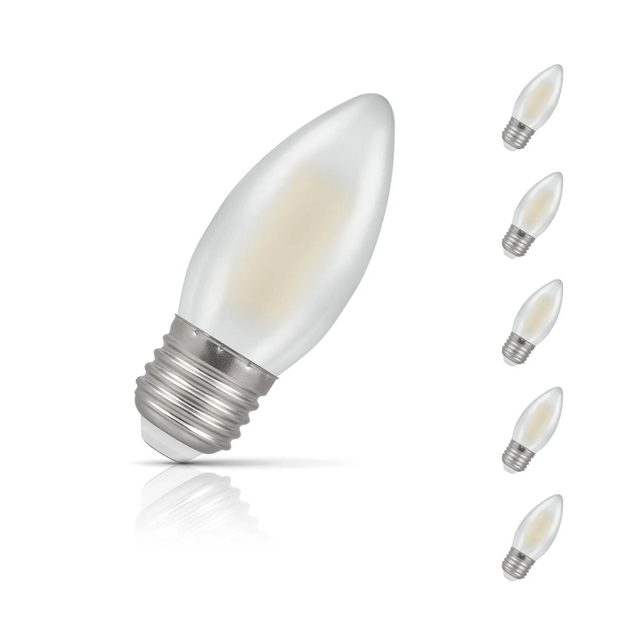 This bulk-buy value pack of 5x Crompton Lamps 4.2W LED candle light bulbs with ES-E27 Edison screw (27mm) fittings are direct replacements for traditional 40W light bulbs, but have the potential to reduce your home lighting bills and reduce the frequency of needing to replace your light bulbs.