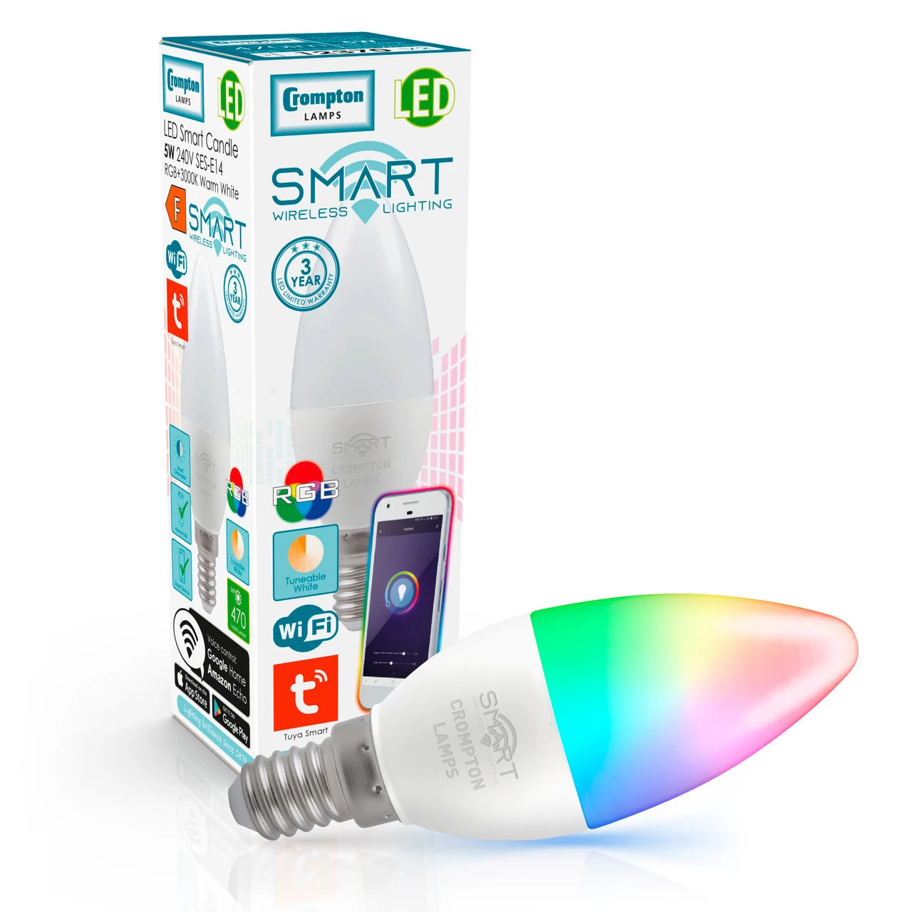 Crompton Candle LED Light Bulb Smart WiFi E14 5W (40W Eqv) Warm White + RGB