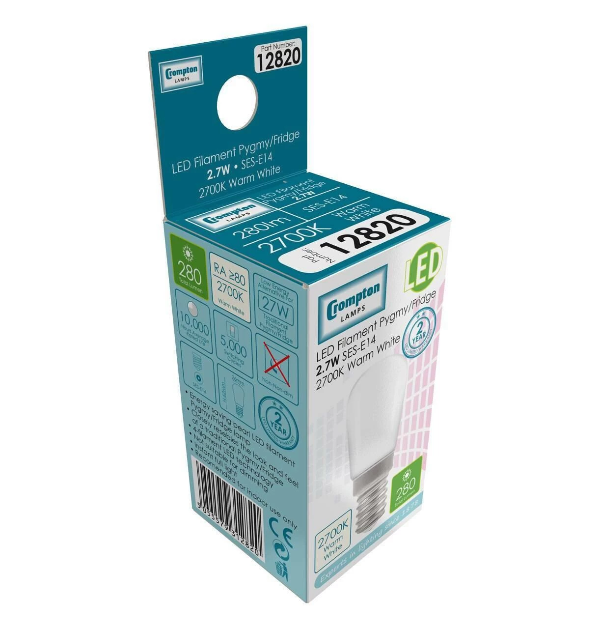 Crompton Fridge/Freezer LED Light Bulb E14 2.7W (27W Eqv) Warm White Opal