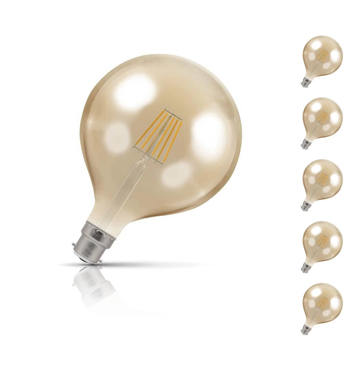 Crompton Globe LED Light Bulb G125 B22 7.5W (60W Eqv) Warm White 5-Pack Vintage
