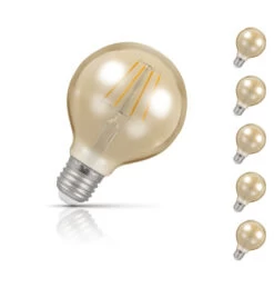 A value pack of 5 fully dimmable 5W LED G80 globe light bulb is part of a wider range that has been developed by Crompton Lamps as a means of replacing its outgoing antique filament range.
