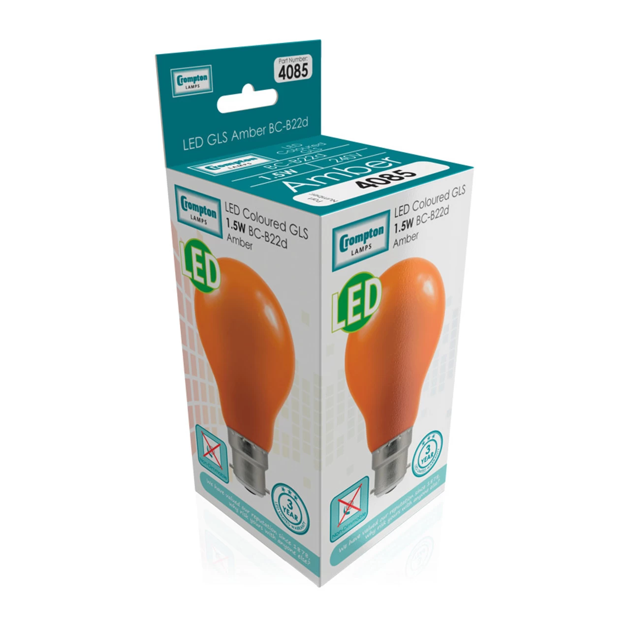 Crompton GLS LED Light Bulb B22 1.5W (15W Eqv) Amber IP65
