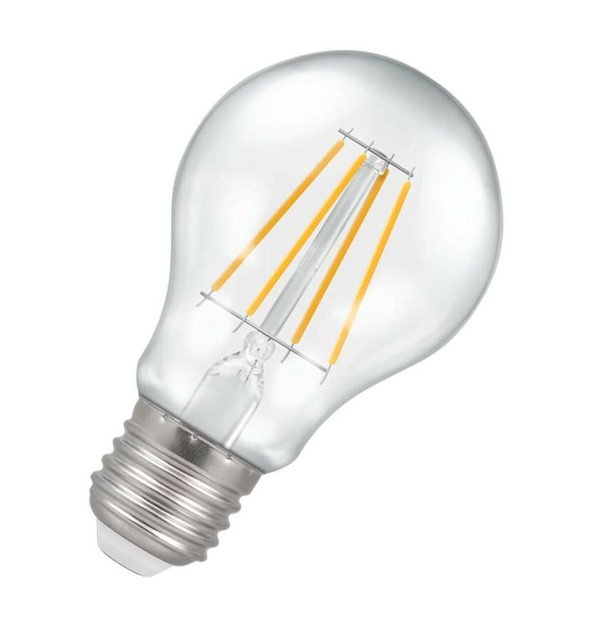 The tungsten filaments found in these older light bulbs have now given way to four LED filaments, resulting in a gorgeous, traditional aesthetic that belies the light bulb’s ultra-modern specification. These filaments, albeit similar in appearance, are much more efficient and robust than their traditional counterparts. Where a traditional light bulb might use approximately 60W to produce 806 lumens, these modern LED GLS light bulbs use just 7.5W. This – coupled with the light bulb’s vastly superior nominal lifetime of 25000 hours – has the potential to reduce lighting bills by up to 90%.