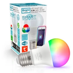 Crompton Lamps LED smart lighting range features a built-in TUYA wifi chip in each light bulb, allowing direct connection to your home WIFI with no extra bridge required, making installation cheaper and easier than other Smart lighting ranges.