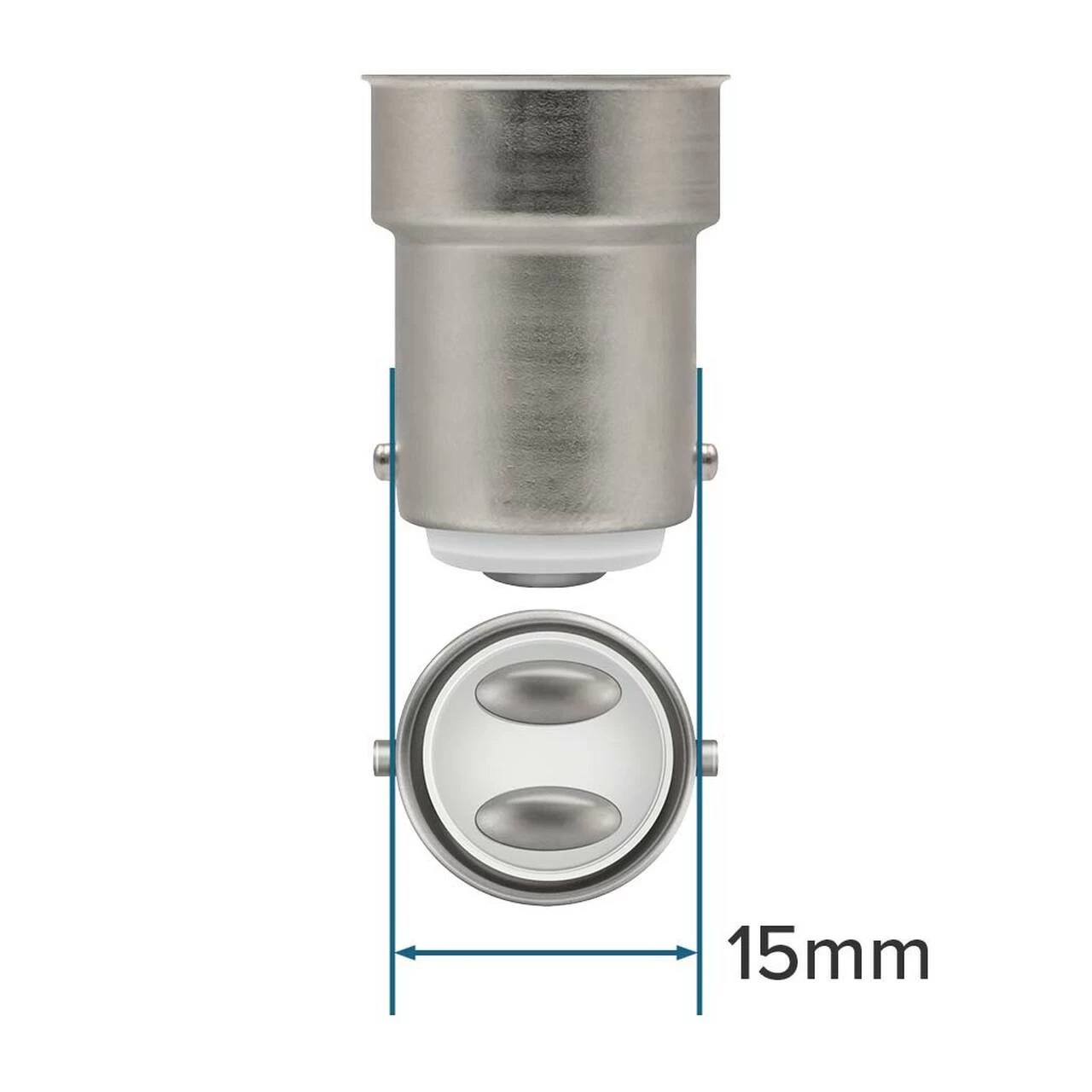 The light bulb’s standard golfball (round) shape and SBC-B15d small bayonet (15mm) cap enable the light bulbs to retrofit directly to any existing fitting designed to accept light bulbs.