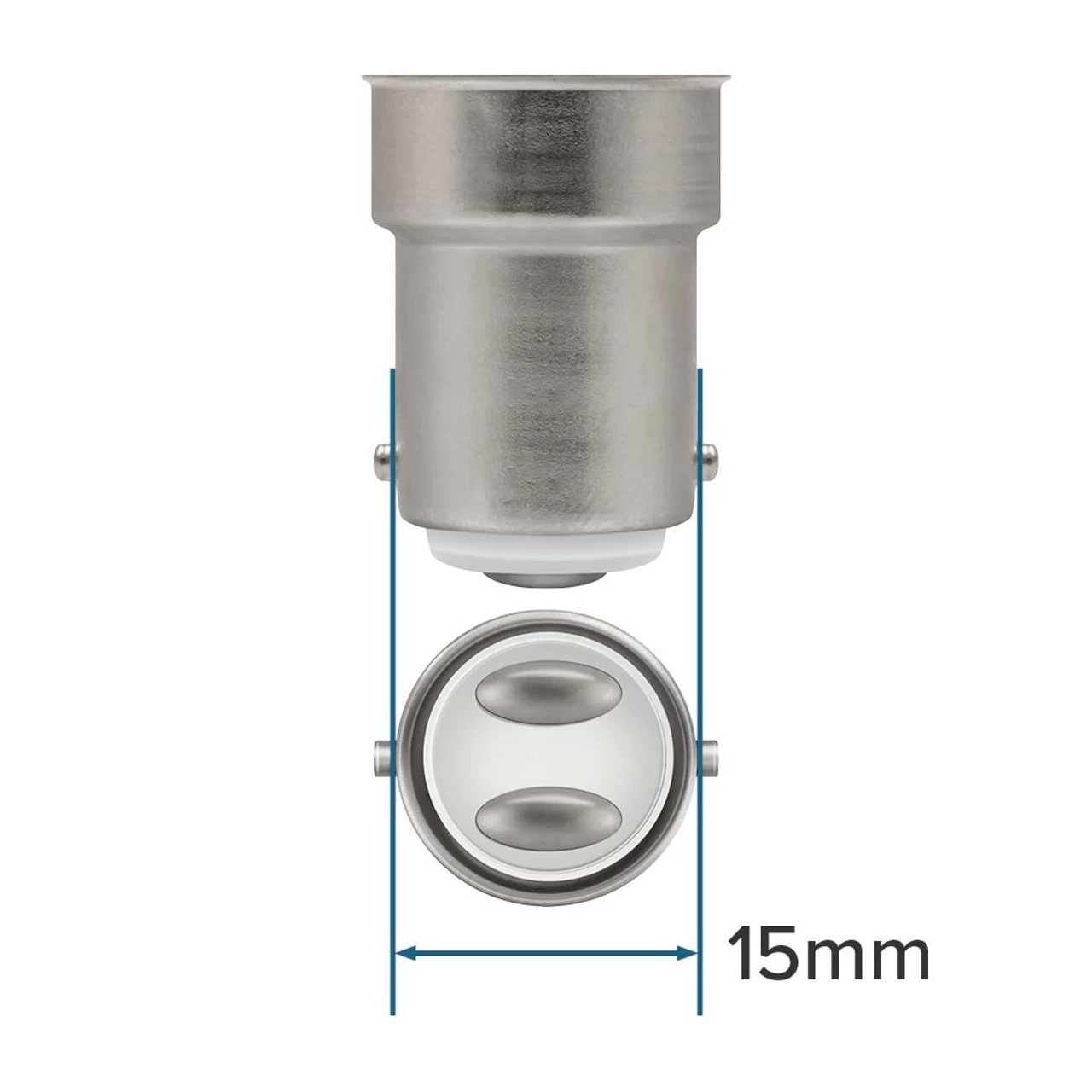 The light bulb’s standard golfball (round) shape and SBC-B15d small bayonet (15mm) cap enable the light bulbs to retrofit directly to any existing fitting designed to accept light bulbs.