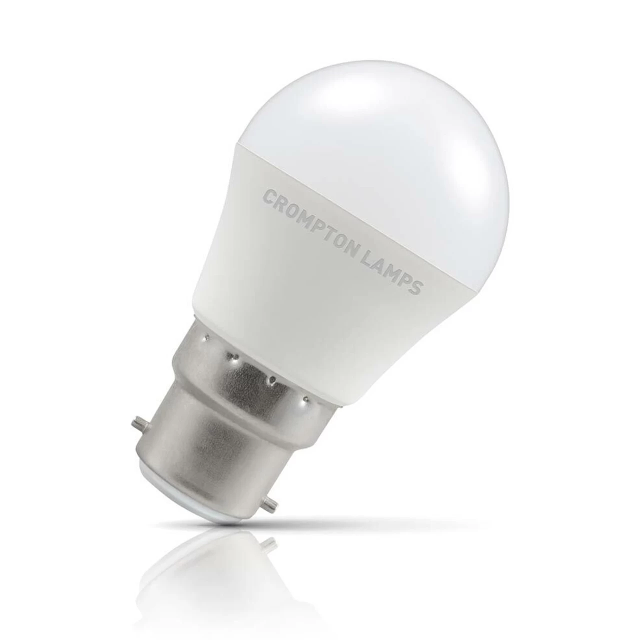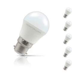 This bulk-buy value pack of 5x Crompton Lamps 5W fully dimmable LED golfball light bulbs with BC-B22d bayonet (22mm) caps are retrofit replacements for incandescent 40W light bulbs, but have the potential to reduce your home lighting bills and reduce the frequency of needing to replace your light bulbs.
