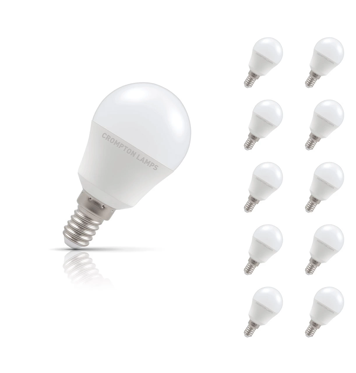 Crompton Golfball LED Light Bulb E14 4.9W (40W Eqv) Warm White 10-Pack Opal