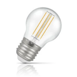 These clear warm white coloured decorative 4.5W LED golfball filament light bulbs from Crompton Lamps are designed to replace traditional 25W incandescent Harlequin golfball light bulbs. Of course, underneath each light bulb’s immaculately coloured envelope things are entirely different, with modern LED components replacing the tungsten filaments of old.