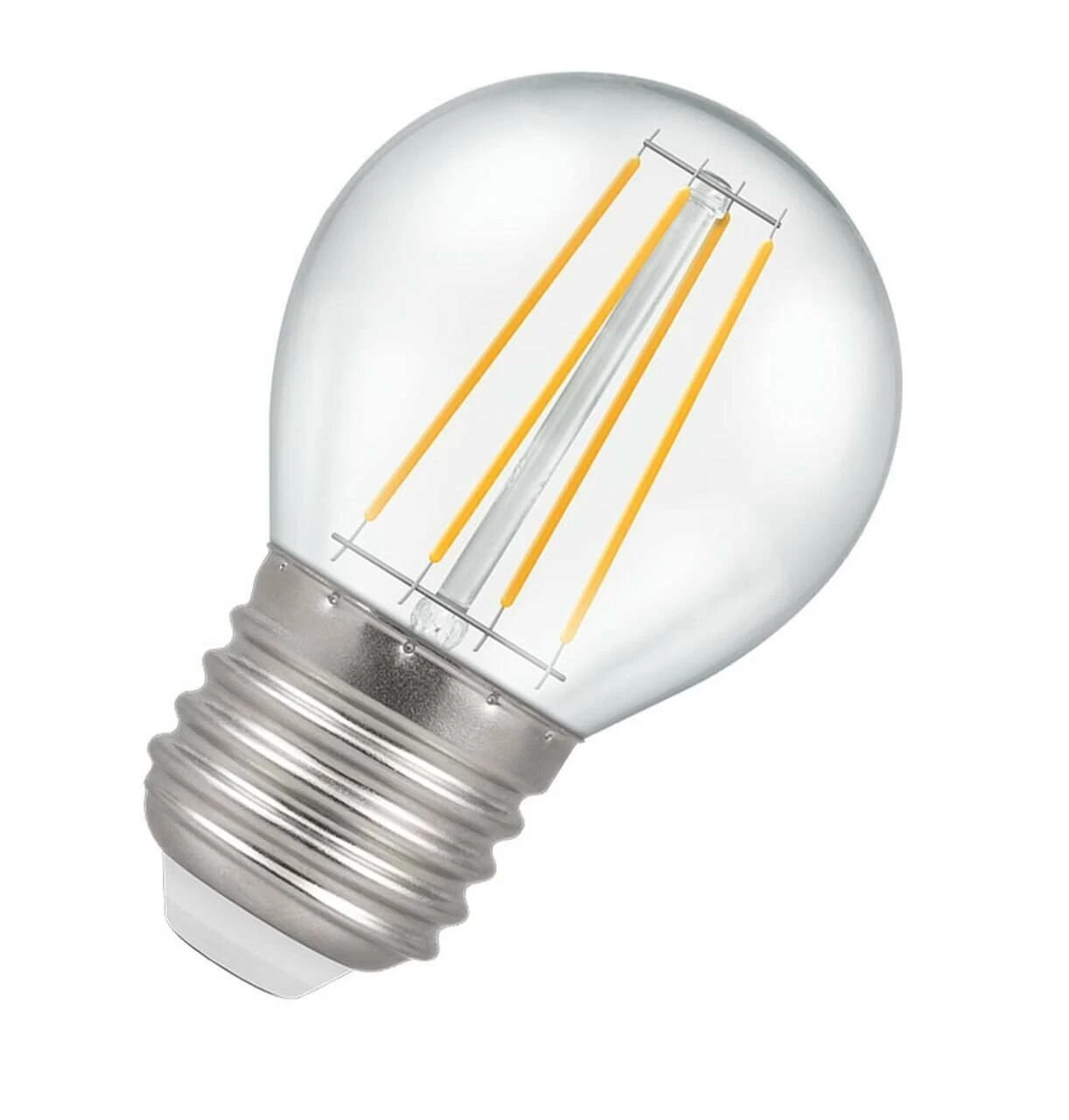 The tungsten filaments found in these older light bulbs have now given way to four LED filaments, resulting in a gorgeous, traditional aesthetic that belies the light bulb’s ultra-modern specification. These filaments, albeit similar in appearance, are much more efficient and robust than their traditional counterparts. Where a traditional light bulb might use approximately 40W to produce 470 lumens, these modern LED golfball light bulbs use just 5W. This – coupled with the light bulb’s vastly superior nominal lifetime of 10000 hours – has the potential to reduce lighting bills by up to 90%.
