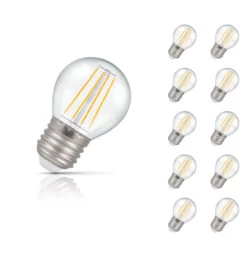 A value pack of 10 dimmable 5W LED golfball (round) light bulb is part of a wider decorative range that has been developed by Crompton Lamps as a means of replacing traditional incandescent light bulbs.