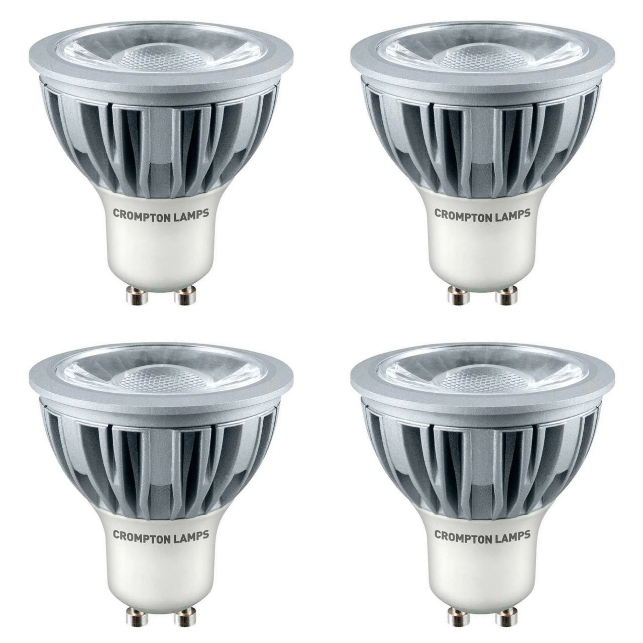 Pack of 4 Cool White Crompton COB (chip on board) LED GU10 spotlight light bulb.