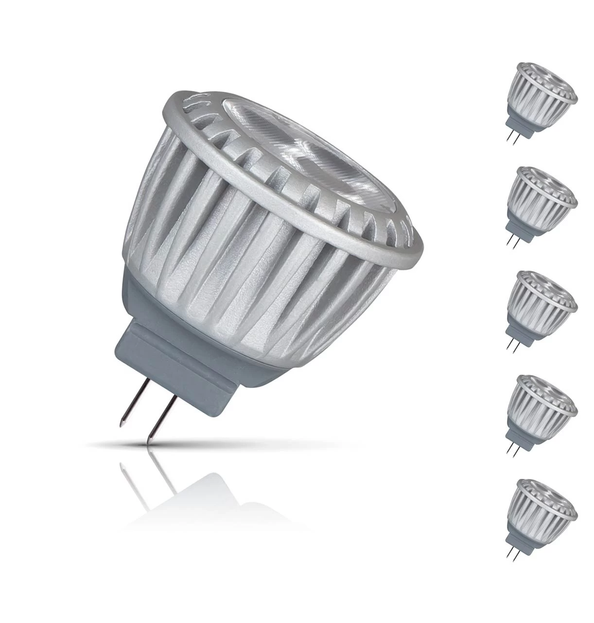 A value pack of 5 LED MR11 spotlight (GU4) light bulbs with a low energy consumption of just 4W making it an ideal retrofit replacement.