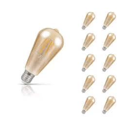 A value pack of 10 fully dimmable 5W LED ST64 squirrel cage light bulb is part of a wider range that has been developed by Crompton Lamps as a means of replacing its outgoing antique filament range.