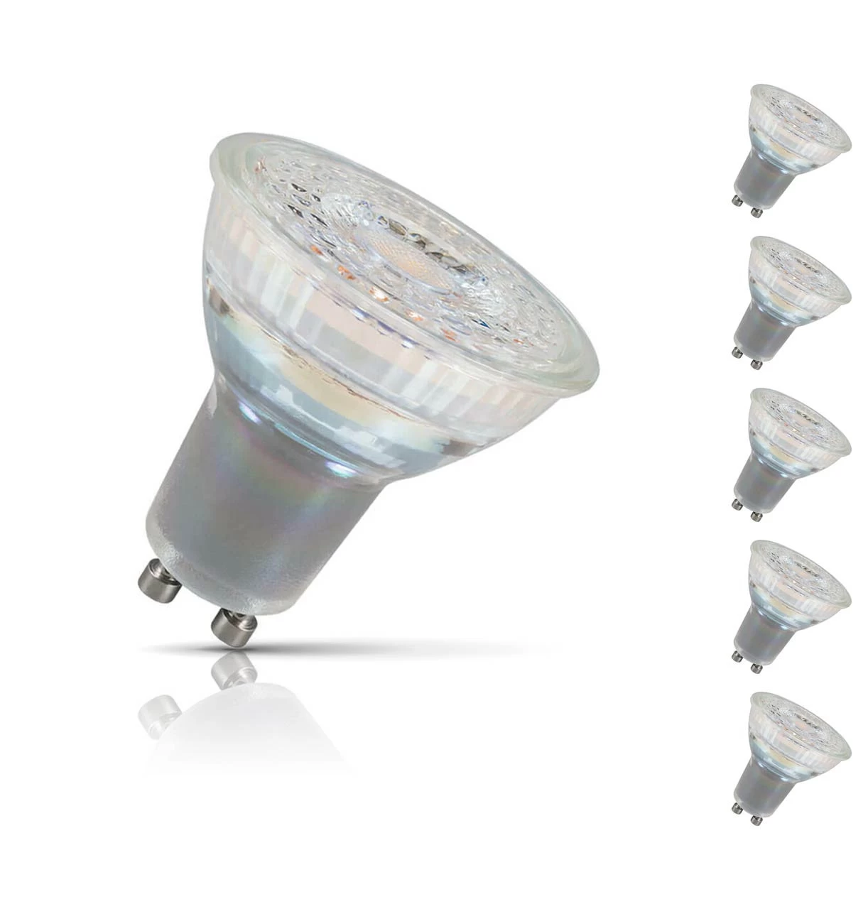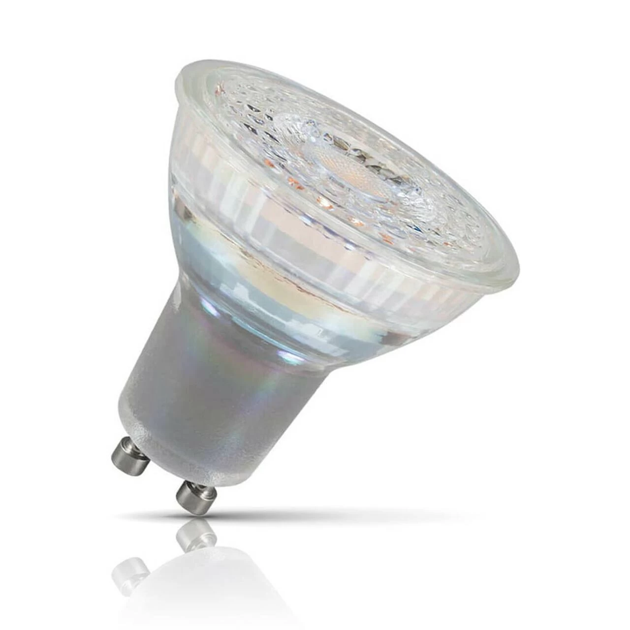 The glass body and retrofit GU10 base of this spotlight means that it will fit right in with existing light fixtures. There’s no need for any additional rewiring or new light fittings, simply remove your old halogen spotlights and replace with this energy saving alternative. At 100% output the light bulb emits 300 lumens, and its DuoDimâ„¢ technology makes it compatible with both leading and trailing edge dimmers (please see manufacturer’s website for details).