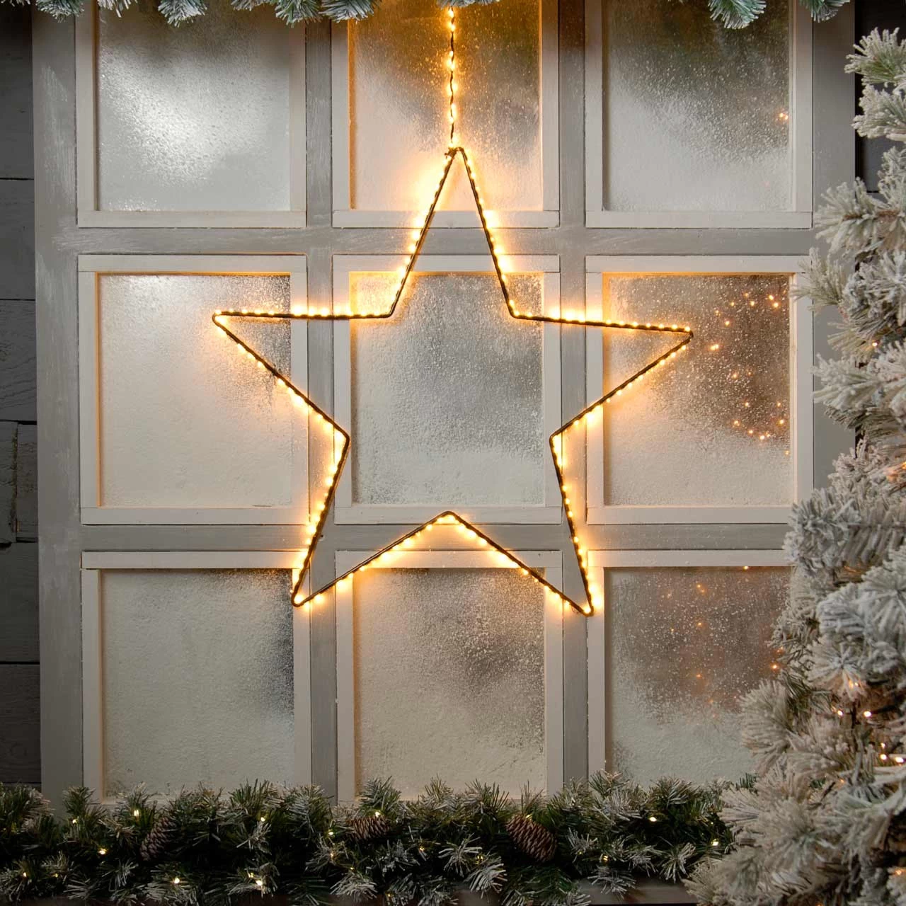 Festive 58cm Black Star Christmas Decoration 180 Warm White LEDs