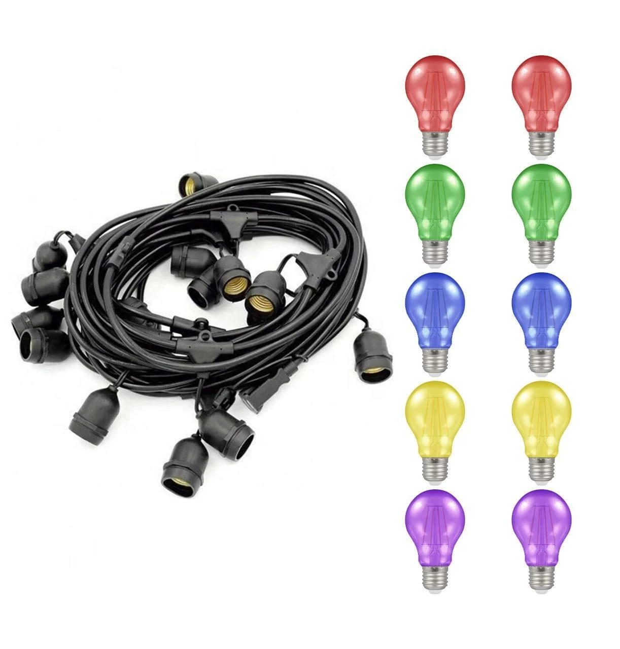 Festoon Light Premium 5m Connectible Outdoor E27 Multi-Coloured with 10x LED GLS Light Bulbs
