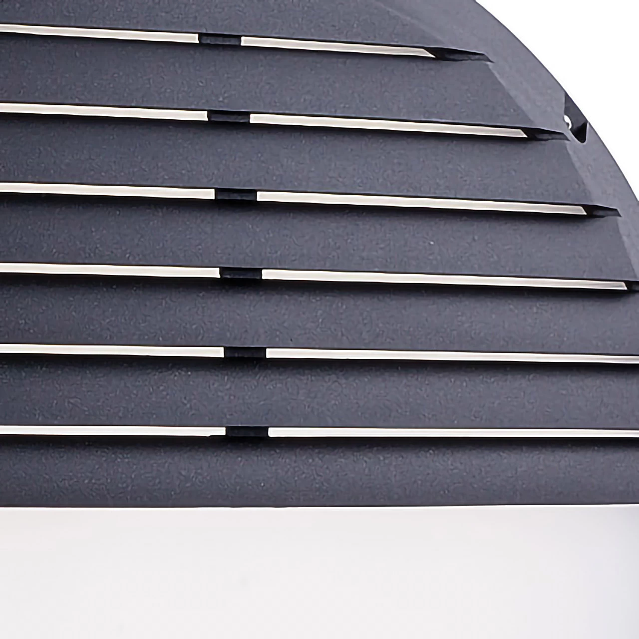 The Firstlight Luca Bulkhead features a louvered top half, designed to focus the light spill downward. This unique design not only adds to its visual appeal but also enhances its functionality, making it ideal for a variety of applications.