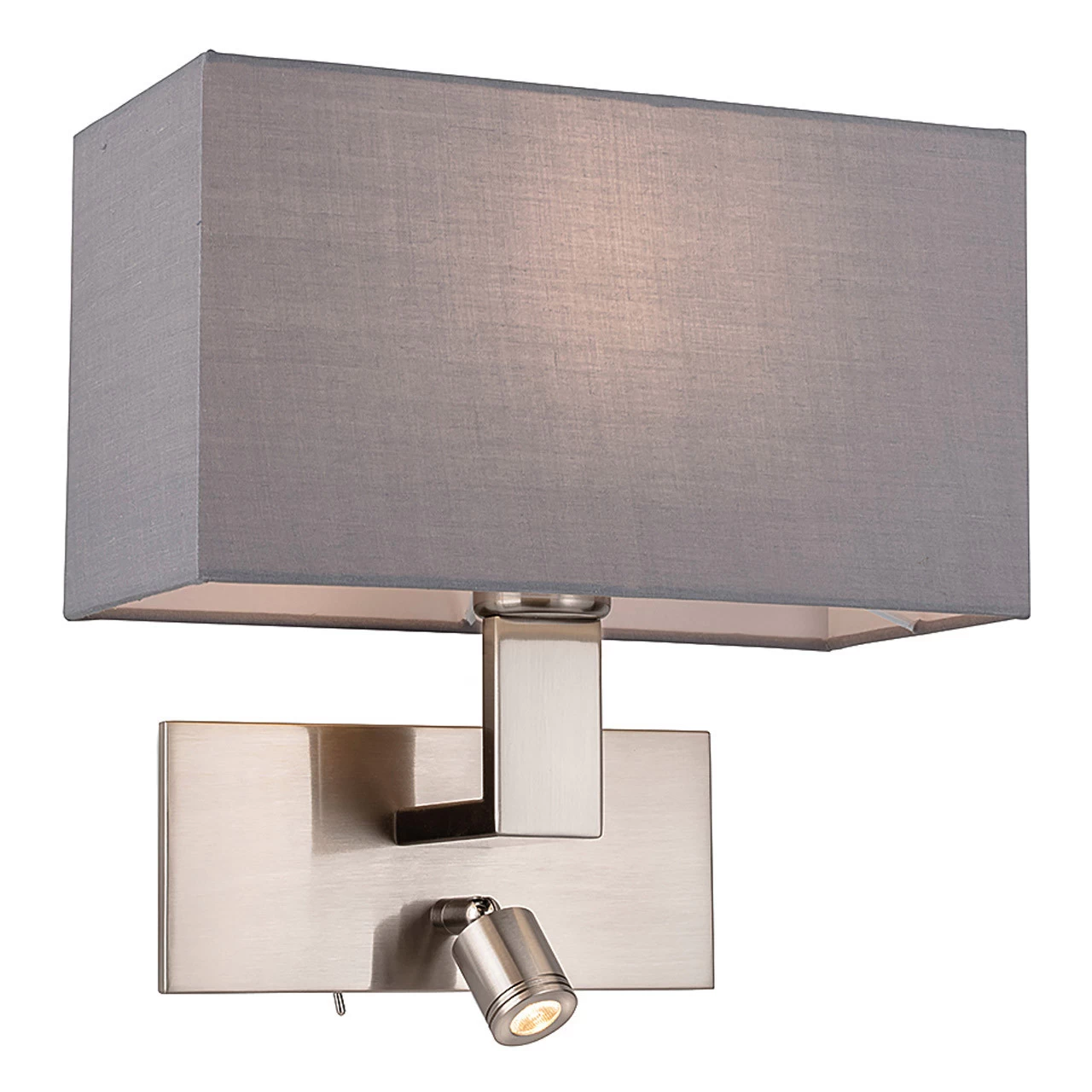 Firstlight Raffles LED 2-Light Wall Light 1W Warm White Brushed Steel and Grey Shade