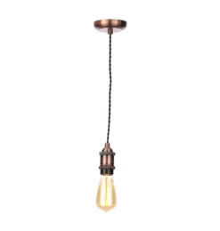 This decorative antique copper ceiling pendant cord set consists of an E27 (Edison Screw) light bulb holder with knurled detailing, ceiling rose with terminal block and contrasting 1.0m twisted fabric cable.