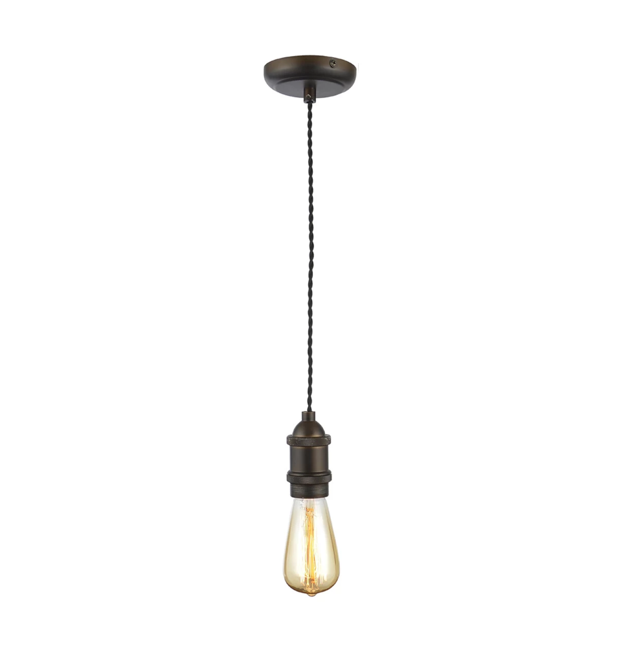 This decorative bronze ceiling pendant cord set consists of an E27 (Edison Screw) light bulb holder with knurled detailing, ceiling rose with terminal block and contrasting 1.0m twisted fabric cable.