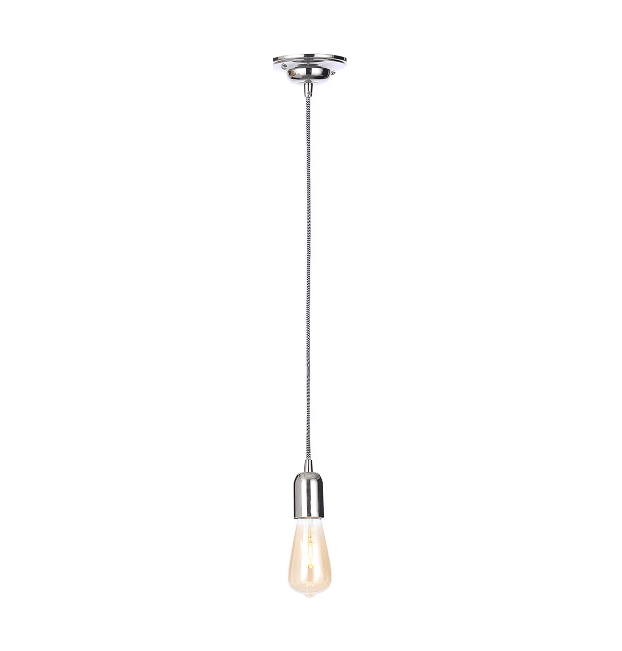 This decorative polished nickel ceiling pendant cord set consists of an E27 (Edison Screw) light bulb holder with authentic detailing, ceiling rose with terminal block and contrasting 1.0m twisted fabric cable.