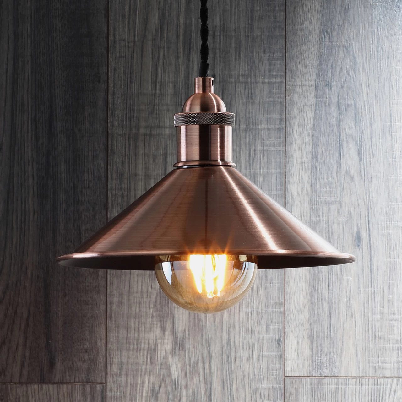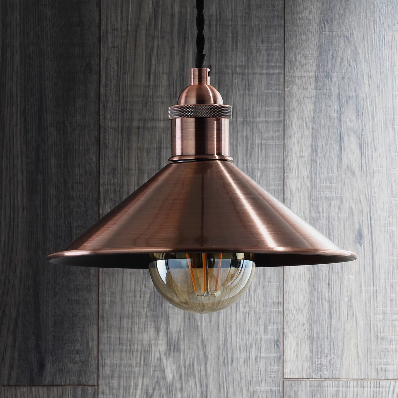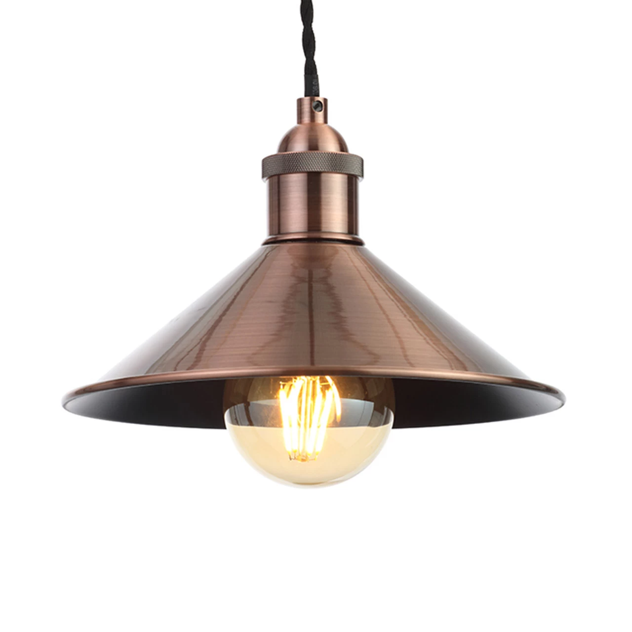 The Inlight Rigel 236mm diameter antique copper diner lamp shade for use with Inlight Dale cable sets.