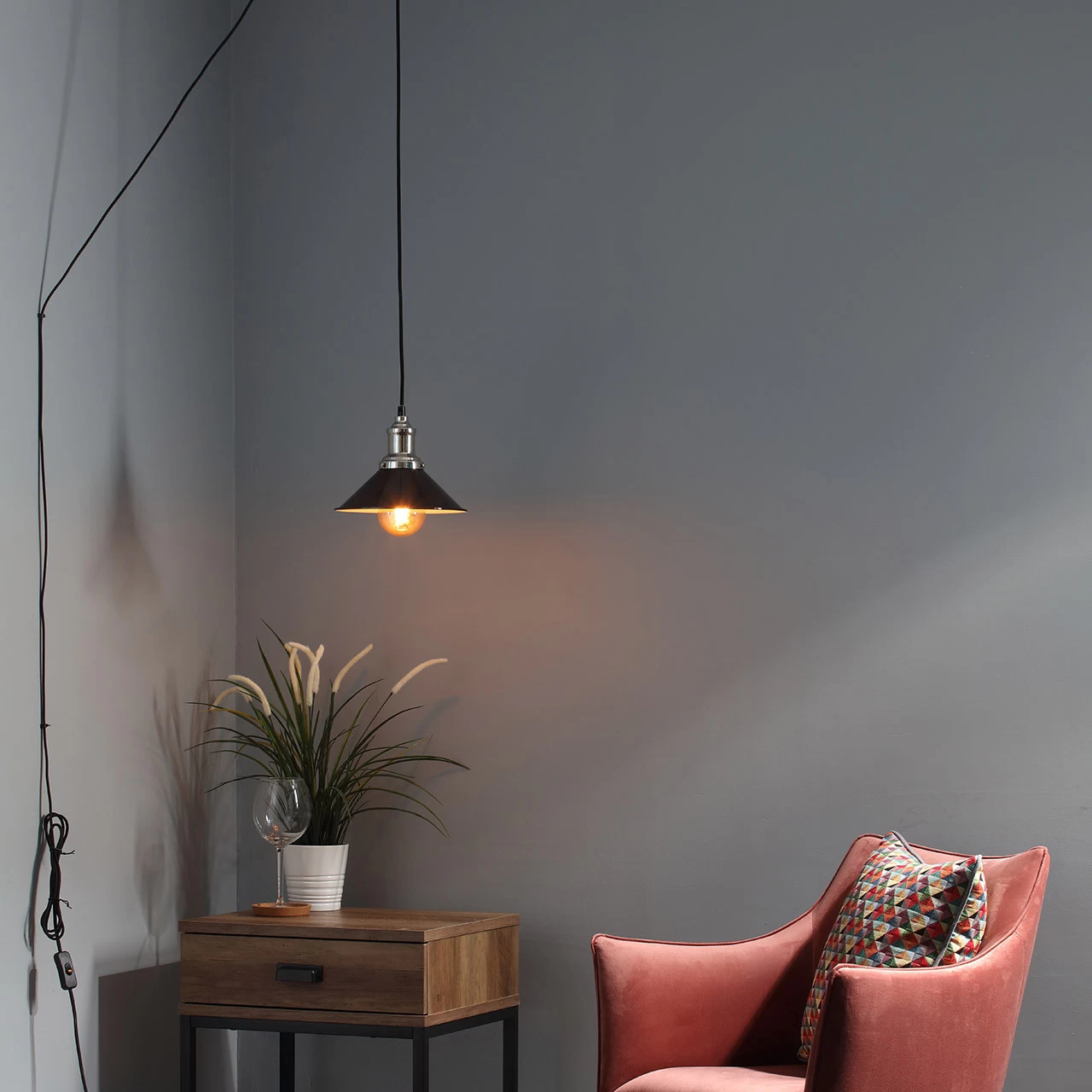The Inlight Rigel 236mm diameter matt black diner lamp shade for use with Inlight Dale cable sets.