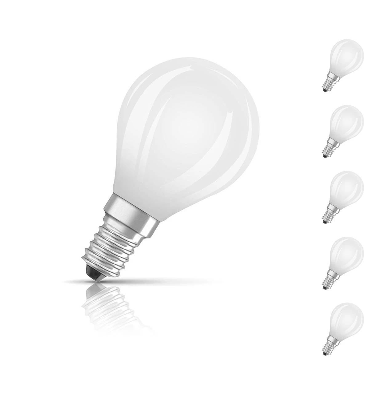 A value pack of 5x of the new Ledvance Performace Class LED RETROFIT golfball (round) light bulbs which produce an efficient and pleasant light with their innovative LED filament technology, they are comparable in design and luminous flux to incandescent light bulbs and light up instantly.