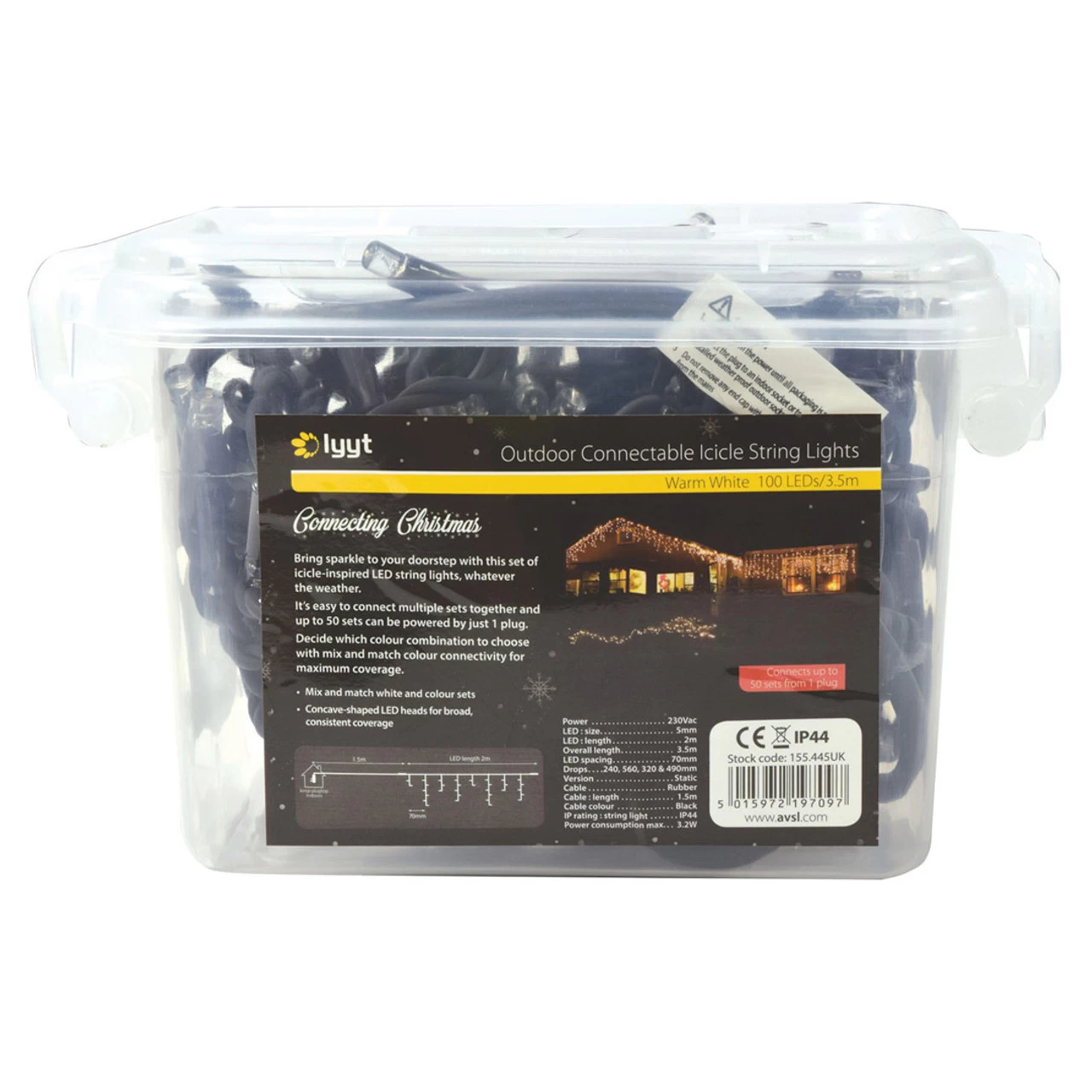 Lyyt-Connect 2m 100 Warm White LED Connectable Outdoor Icicle Lights