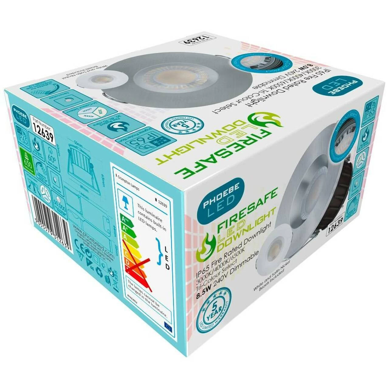 The Phoebe LED downlight has a IP rating of IP65, making it suitable for use in bathroom zones 1-2 and other humid conditions. With a 50,000 hour life and 100,000 switching cycles, it is built to last. Its 60° beam angle, 3000K, 4000K, and 6500K tri-colour select colour temperature, and high colour rendering index it is a reliable and versatile lighting solution.