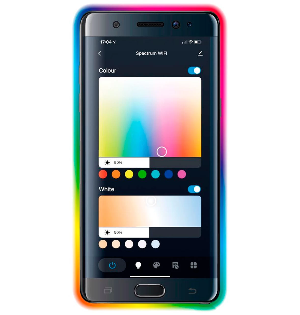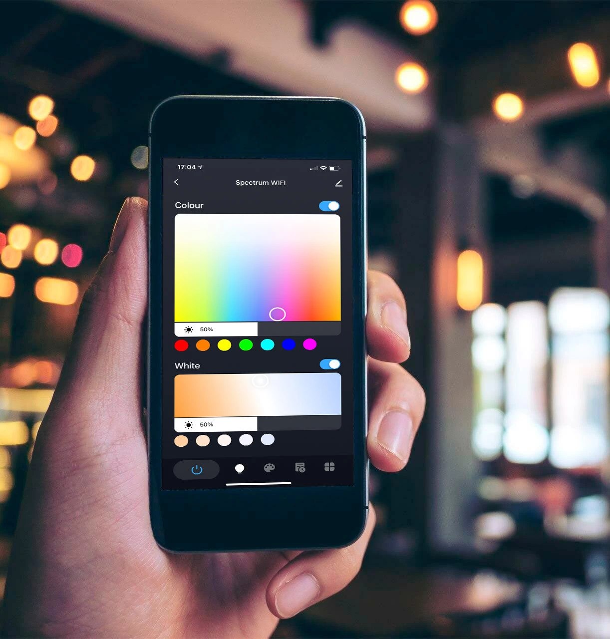 Unlike other downlights, which are difficult to adjust once installed, the Phoebe LED Spectrum can be tuned with a simple swipe on your smartphone. The colour temperature of the centre spotlight can be adjusted to anything from 2200K-6500K and can be fully dimmed. So whether you need a soft, warm white light for your living room or a bright, cool light for retail displays, the Phoebe LED Spectrum can do it all. What’s more, the spotlight is accompanied by a stunning tuneable RGB halo-light rim, which casts additional ambient light around the fixture. With the smartphone app, you can fully customise the colour of the halo-light rim to create the lighting design you have always wanted.