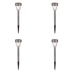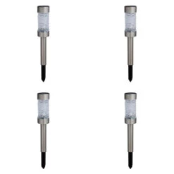 SuperBright Solar Powered LED Stake Light MONTANA 4-Pack White Brushed Stainless Steel