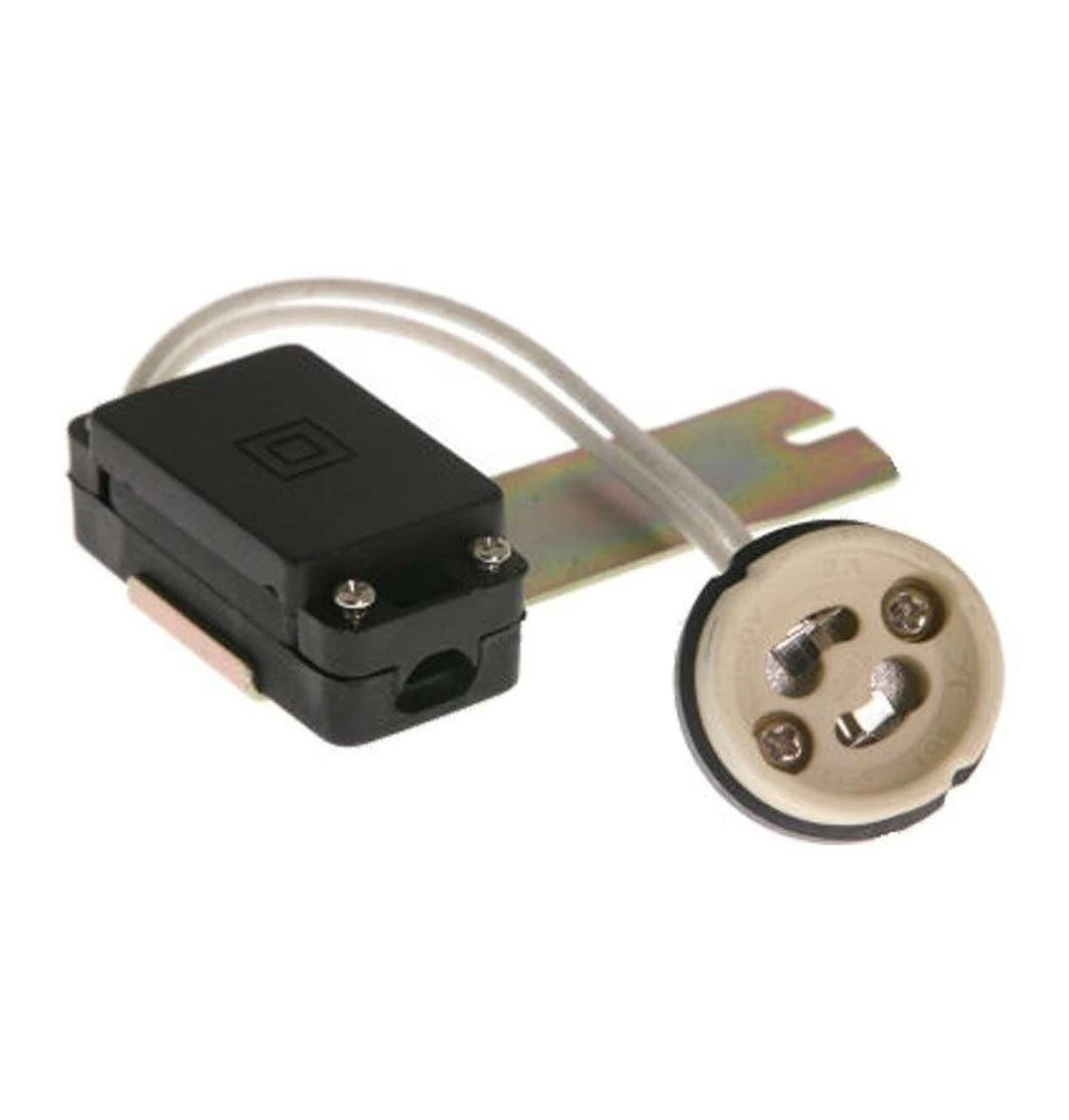 - A ceramic GU10 fitting with heat resistant flying leads used for converting 12V low voltage fitting to 240V mains voltage. Measurement shown is for a complete unit. Cable lengths may vary. Includes terminal block and mounting bracket.
