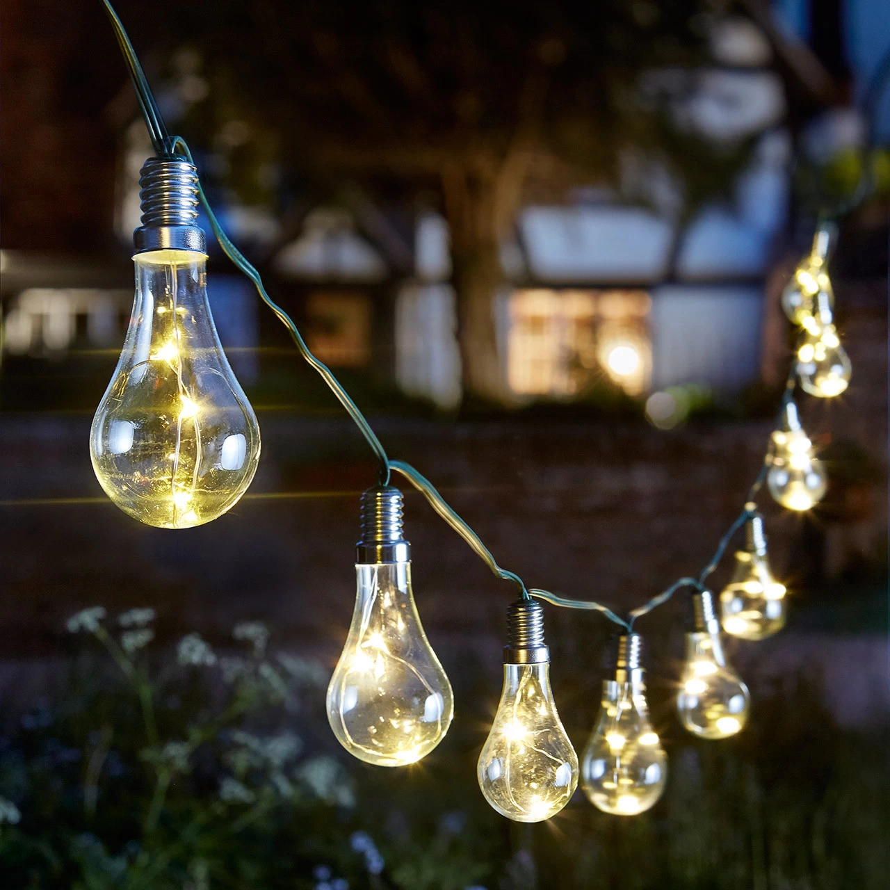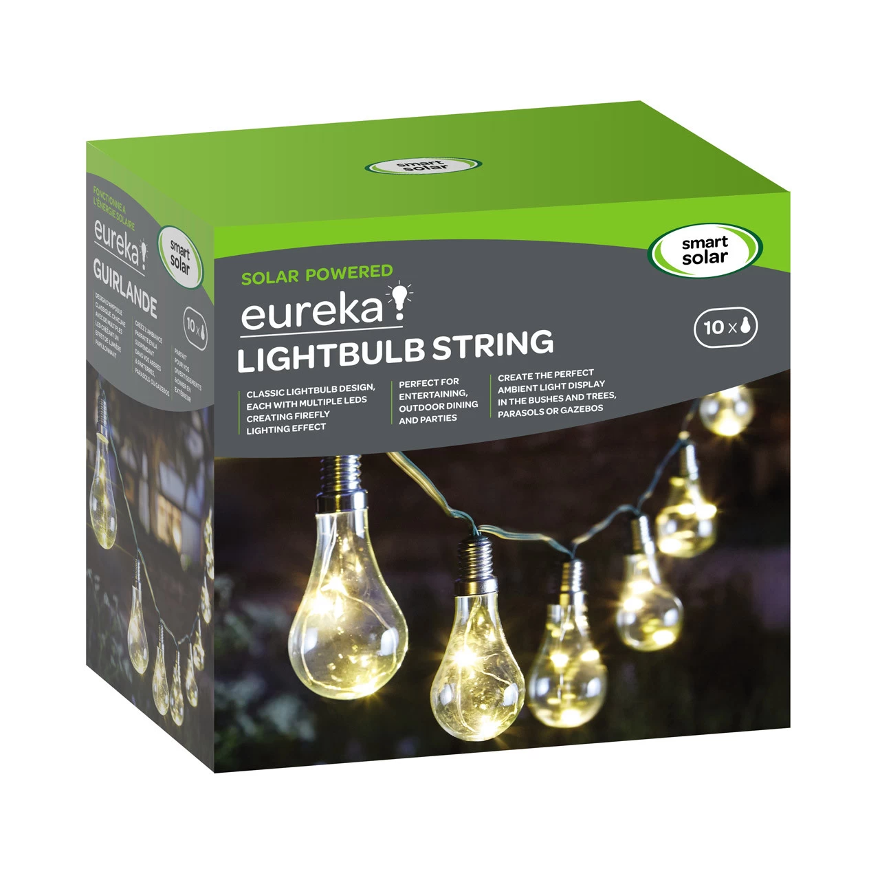 The Eureka! Lightbulbs Solar String Light from Smart Solar features 10 individual glass light bulbs, each light contains 3 x warm white LEDs on micro wire creating a stunning fairy light effect. These solar festoon lights create the perfect ambient light display to transform your garden when placed in bushes, trees, parasols or gazebos and are perfect hung from festoon poles for lighting up alfresco dining areas and outdoor spaces.