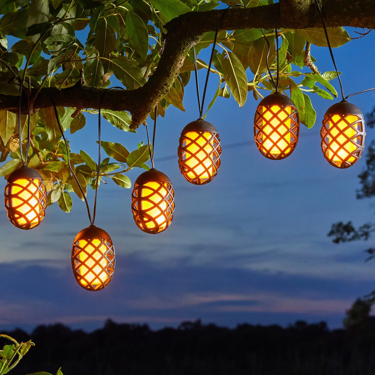 The Cool Flame Solar String Light from Smart Solar features 10 individual rattan style lanterns and features cool flame technology which remains cool to the touch while providing you with a natural simulated dancing flame light. These solar festoon lights create the perfect ambient light display to transform your garden when placed in bushes, trees, parasols or gazebos and are the ideal way to brighten up any garden party, barbecue or wedding.