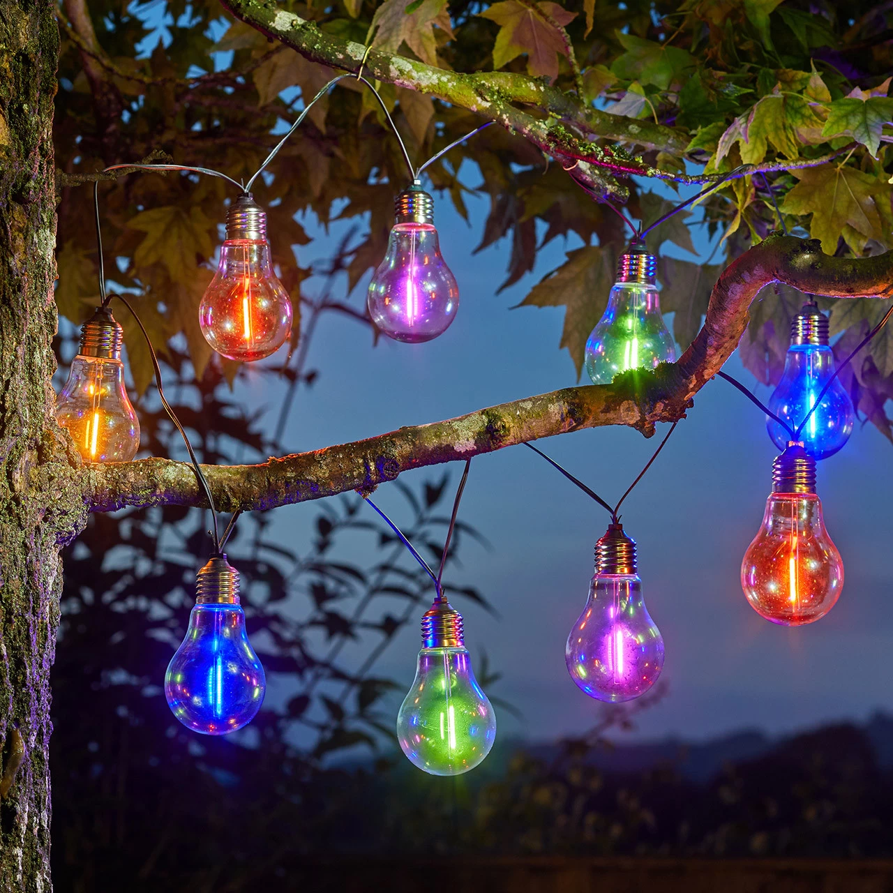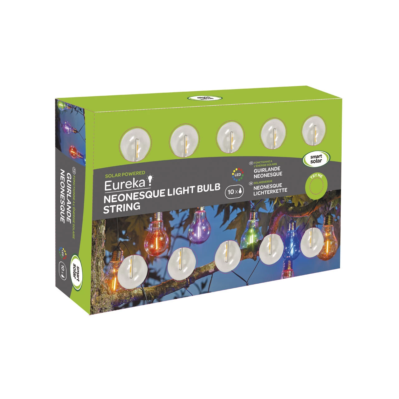 Smart Solar LED 2m Filament Effect EUREKA! Neonesque Light Bulb String Light Set of 10 Lights Mixed