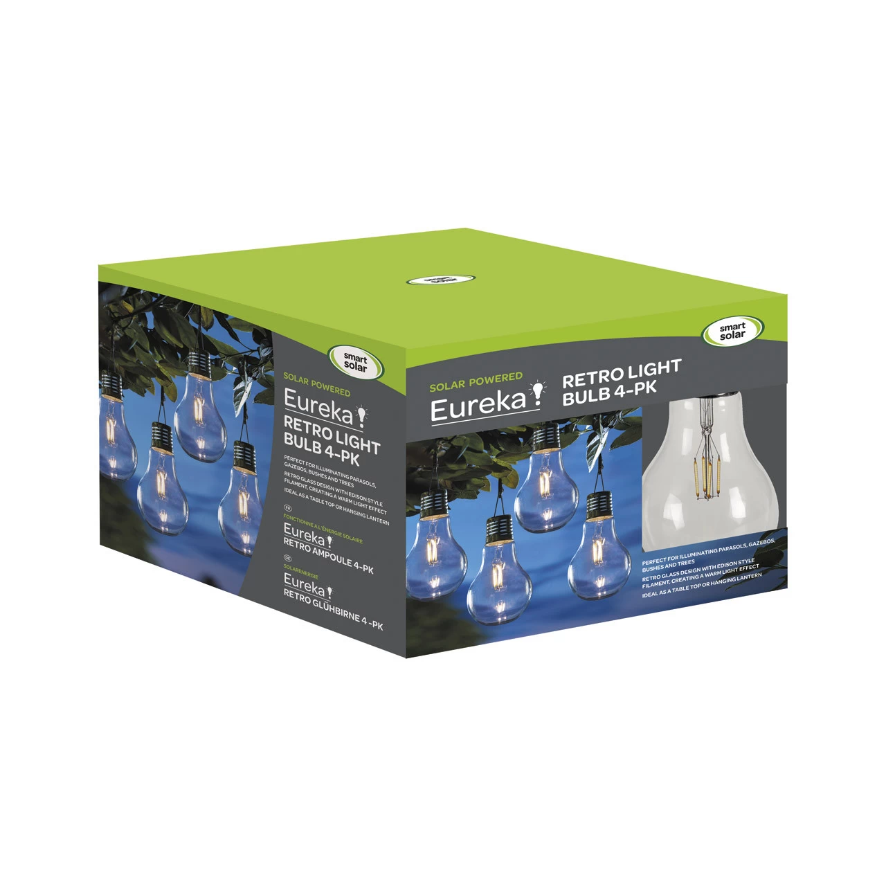Smart Solar LED Edison Filament Effect EUREKA! Retro Light Bulbs 4-Pack Warm White Clear