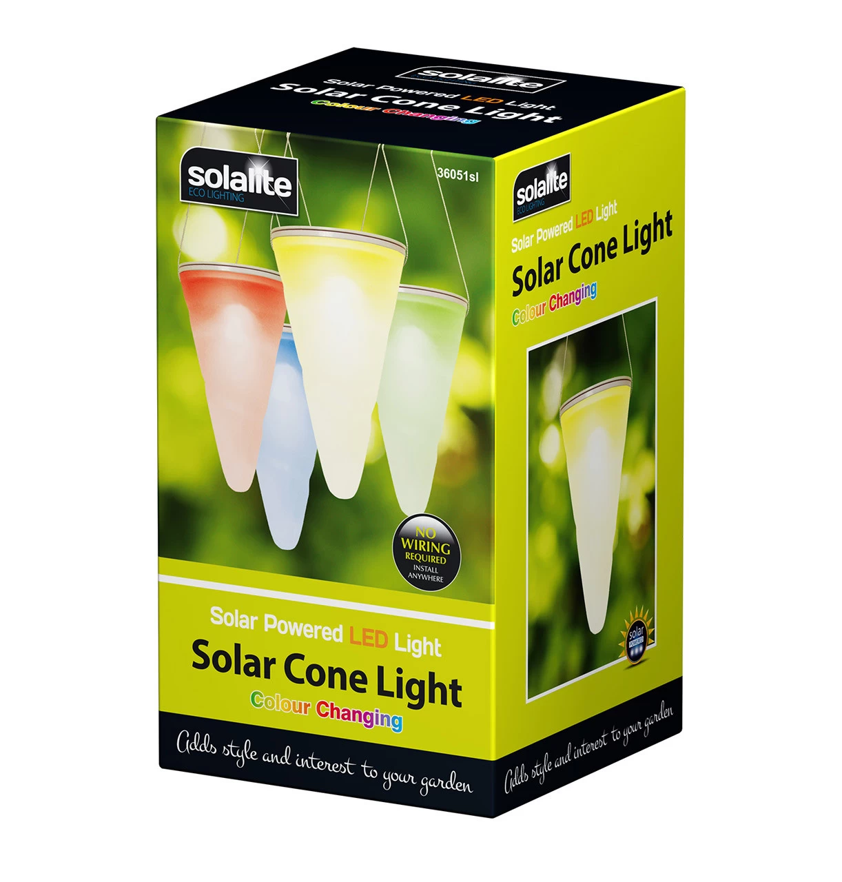 A stunning colour changing solar cone light. Brighten up your garden with this beautiful weatherproof frosted solar cornet lights.