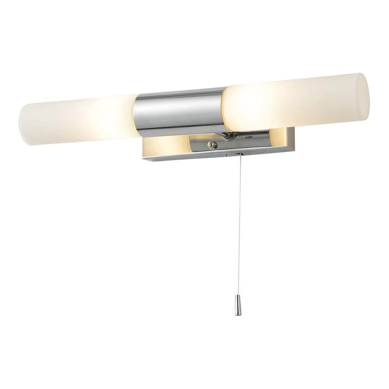 Spa Aries 2-Light Wall Light with Pull Switch Opal Glass and Chrome