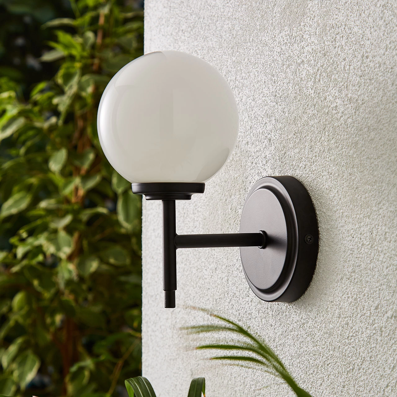 Spa Porto Single Globe Wall Light Opal and Matt Black