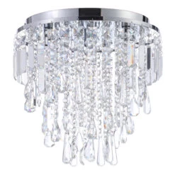 The Spa Bresna small flush ceiling light, measuring just 350mm diameter, is finished in chrome with clear glass crystal droplets is a stunning light fitting and is a perfect way to enhance your home décor with a stylish and modern piece.