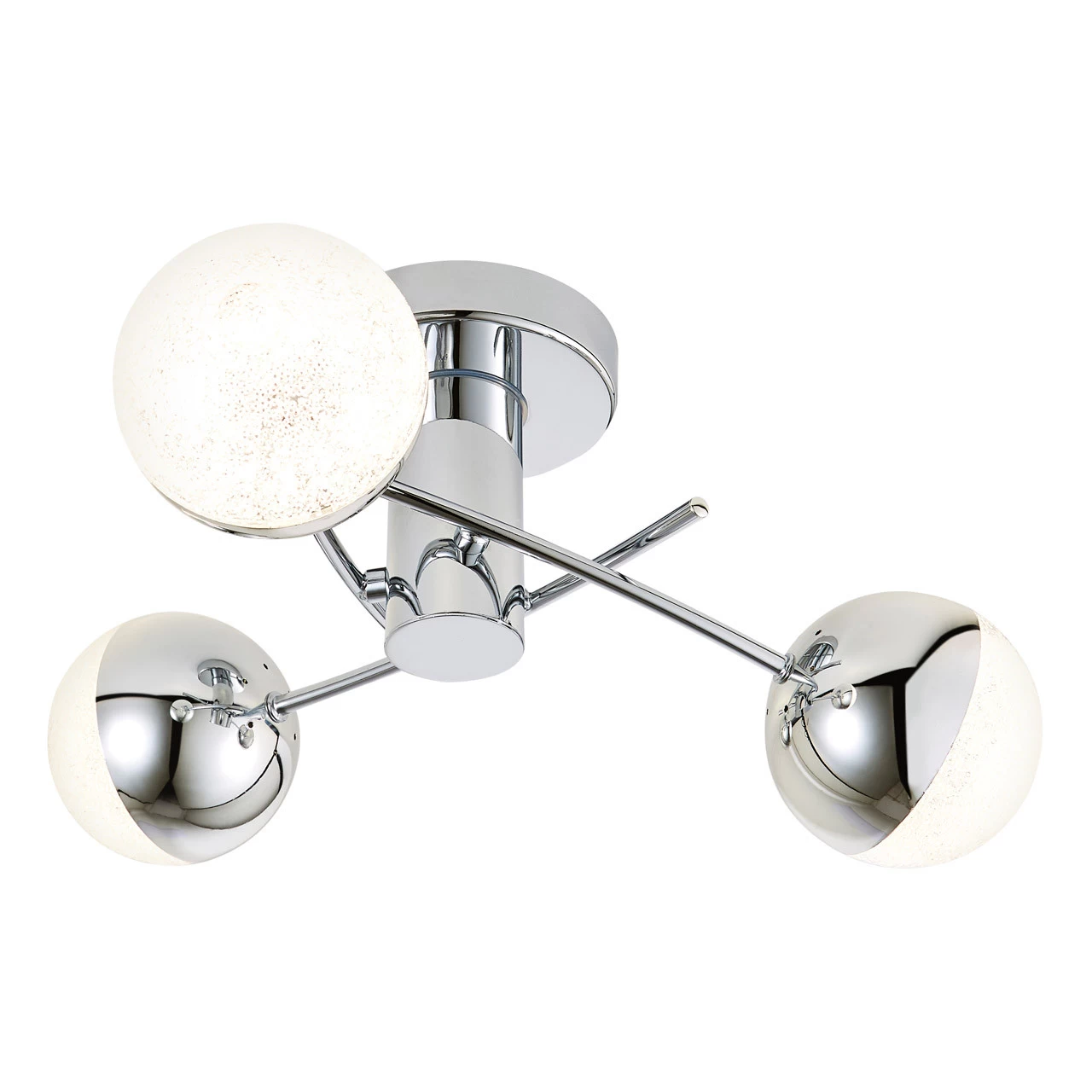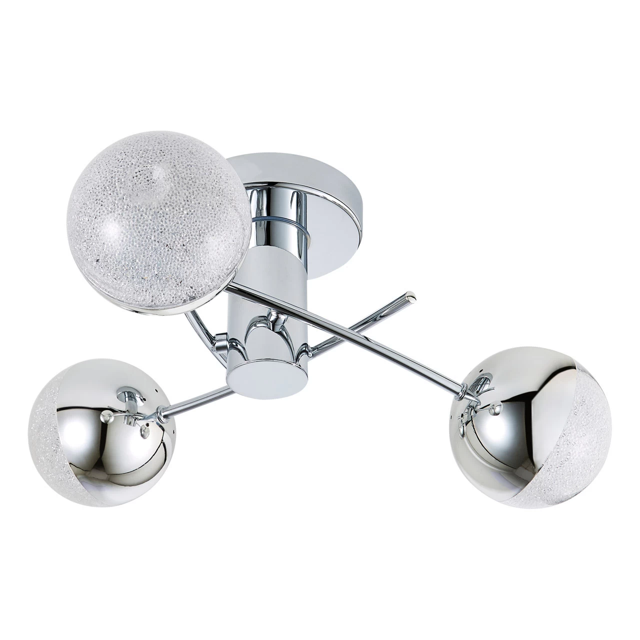 The Spa Rhodes 15W LED ceiling light finished in chrome with crackle effect glass shades is a stunning light fitting and is a perfect way to enhance your home décor with a stylish and modern piece.