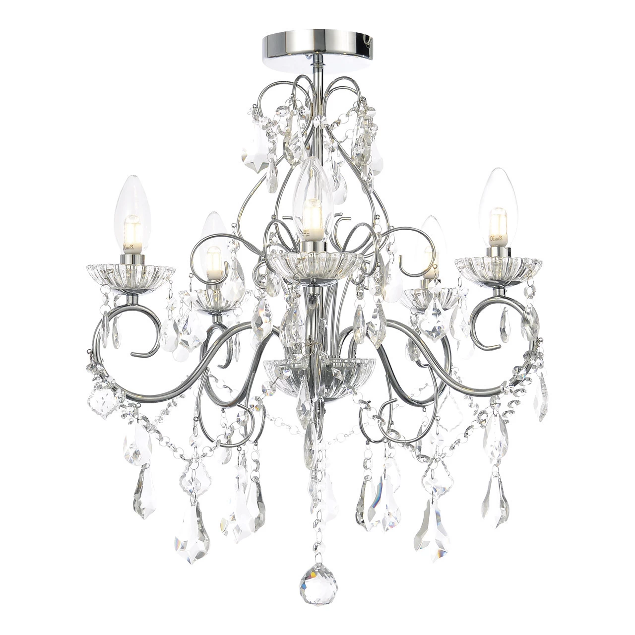 Spa Vela 5-Light Flush Chandelier Crystal Glass and Chrome