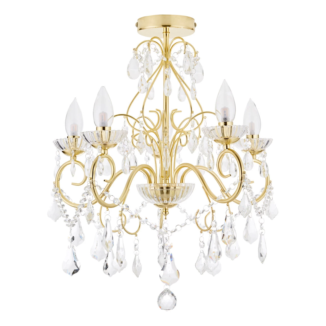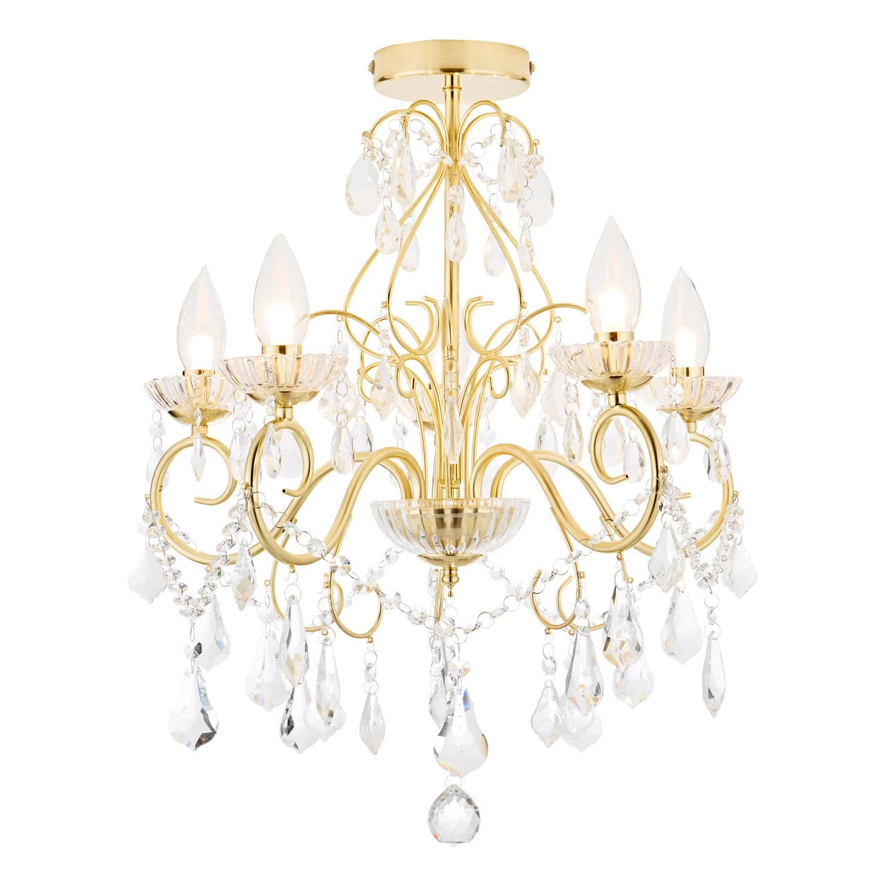 Spa Vela 5-Light Flush Chandelier Crystal Glass and Satin Brass